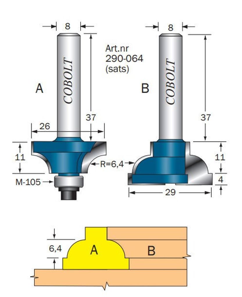 Observera att fräsarna med styrlager dessutom är utmärkta för all slags kantprofilering. Levereras endast parvis.