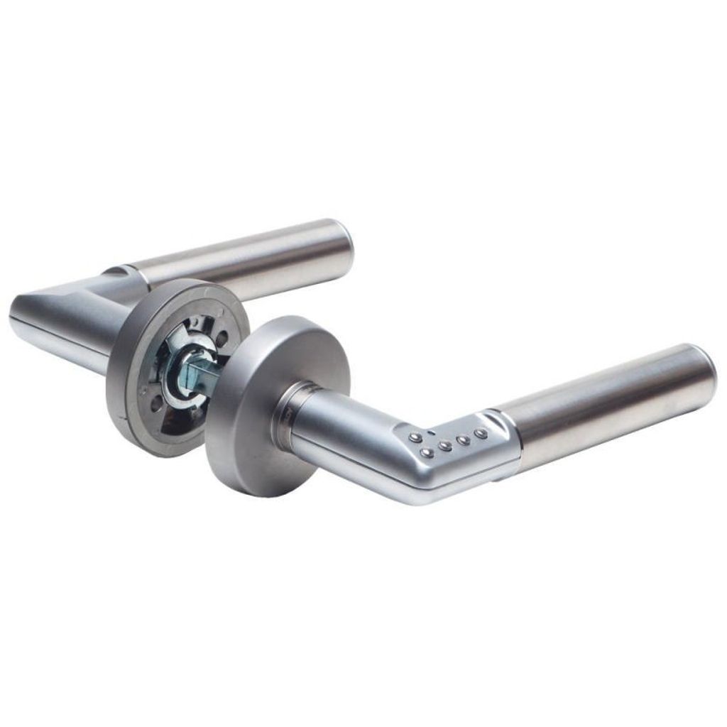 Användningsområde: För bekväm låsning/upplåsning av innerdörrar. Egenskaper: Passar på låshus i Skandinavisk standard, typ Modul och Connect. Material, borstat rostfritt stål, matt- och blankförkromad zink. Finns höger- och vänsterutförande. Endast för montage inomhus. Funktion: Låsmekanismen manövereras med inbyggd knappsats med fem knappar. Fyra knappar för att mata in en fyra- till sexsiffrig kod för upplåsning samt en knapp för låsning. Grön lysdiod blinkar och ett ljud hörs vid knapptryckning för upplåsning. Röd lysdiod blinkar och ett ljud hörs vid knapptrykning för låsning. Levereras med fabrikskod som enkelt kan ändras av användaren. Koden är kvar vid spänningbortfall/batteribyte. Drivs av två CR2, litiumbatterier som ger cirka 100.000 operationer.