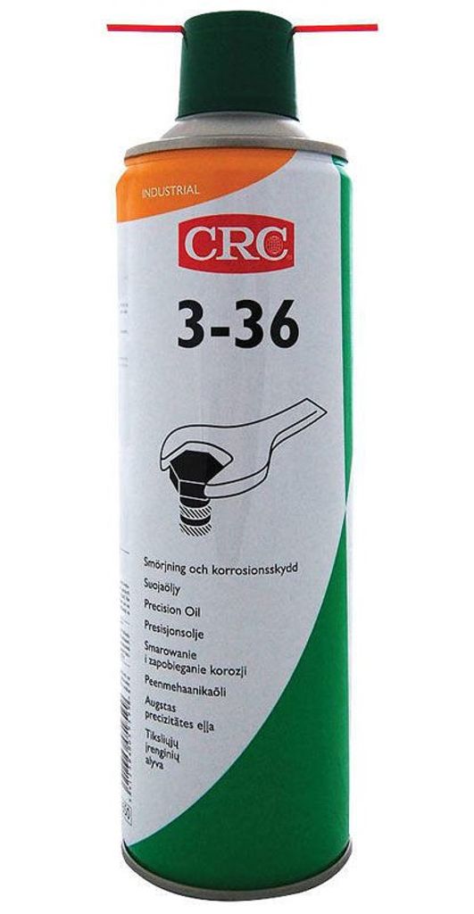 CRC 3-36 är en olja och rostförhindrande medelsammansättning som ger hög korrosionsbeständighet. Den skyddar mot ”fingeravtrycks”-korrosion, tränger ut fukt och smörjer effektivt. Lämplig för metallbearbetning och är livsmedelsgodkänd.