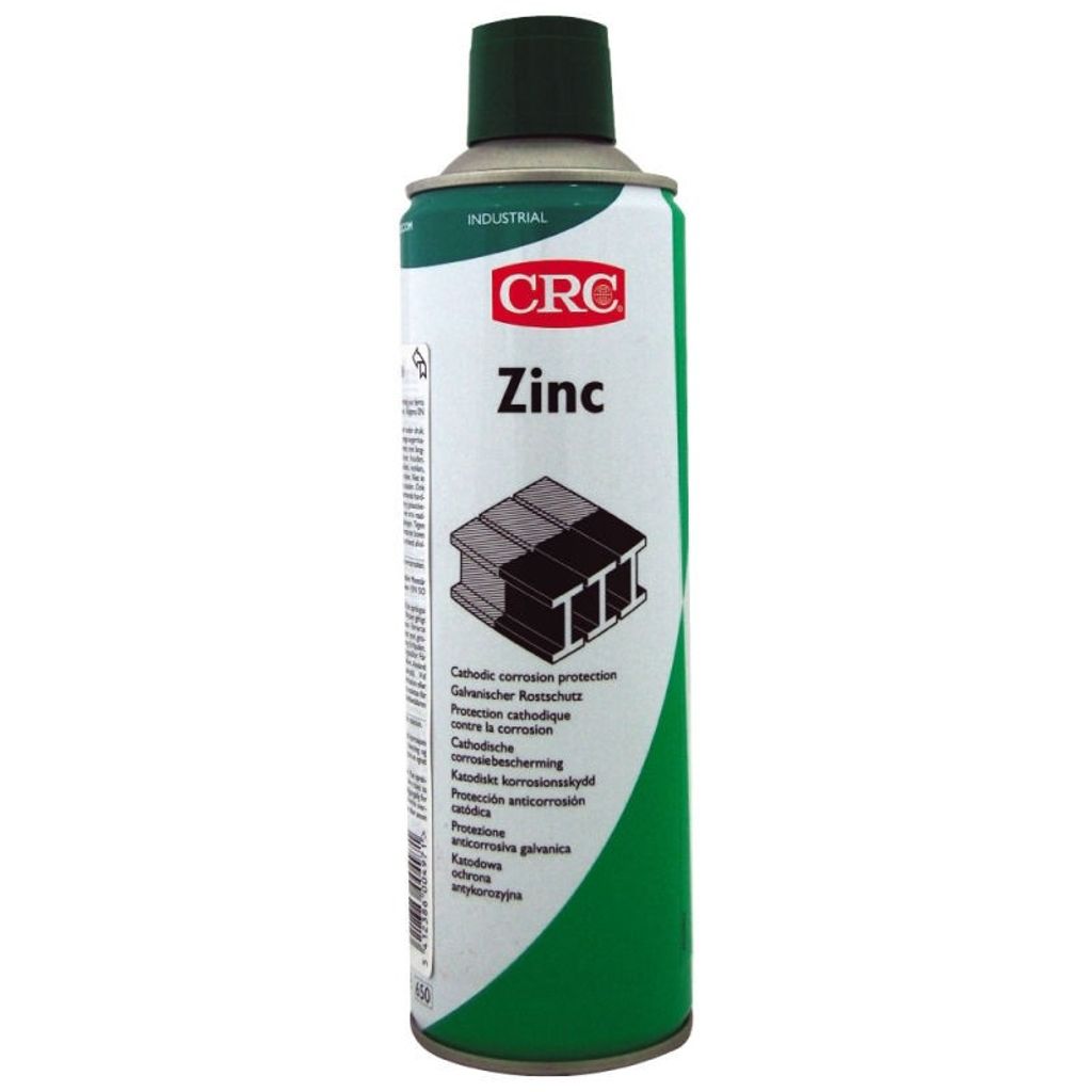 CRC Zink (Industri). För förbättring av galvaniserat järn och stål. Ger en elektrokemisk bindning med metallbasen. Idealisk till förbättring och reparation av svetsade och galvaniserade ytor. Ger aktivt skydd mot rost och rostangrepp. 97% ren zink.