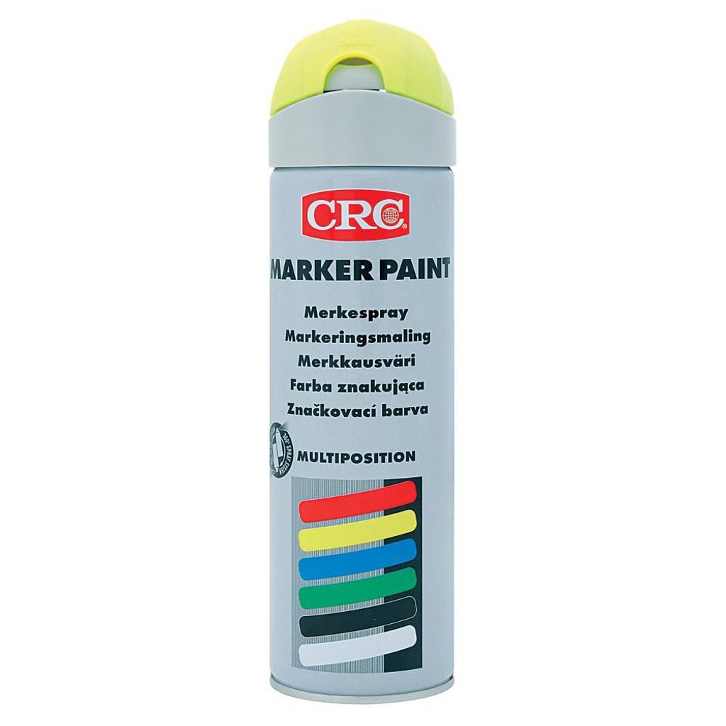Märkfärg Marker Paint CRC, Snabbtorkande, fluorescerande allroundspray för all form av professionell märkning. Hög viskositet vilket medför att färgen rinner mindre och kan även appliceras vertikalt. Går att använda på alla underlag även där väta förekommer, utmärkt täckförmåga. Rörlig skyddshatt som skyddar mot onödigt spill. Innehåll 500 ml.