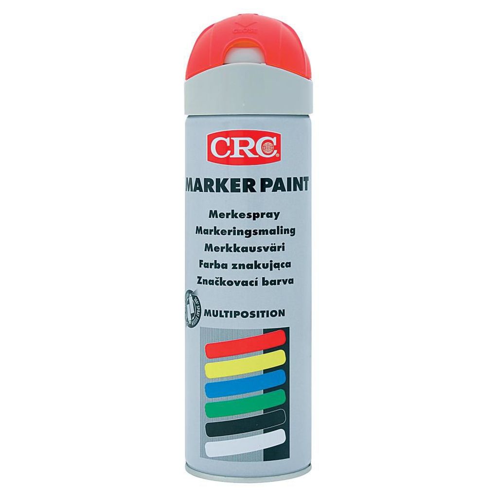 Märkfärg Marker Paint CRC, Snabbtorkande, fluorescerande allroundspray för all form av professionell märkning. Hög viskositet vilket medför att färgen rinner mindre och kan även appliceras vertikalt. Går att använda på alla underlag även där väta förekommer, utmärkt täckförmåga. Rörlig skyddshatt som skyddar mot onödigt spill. Innehåll 500 ml.
