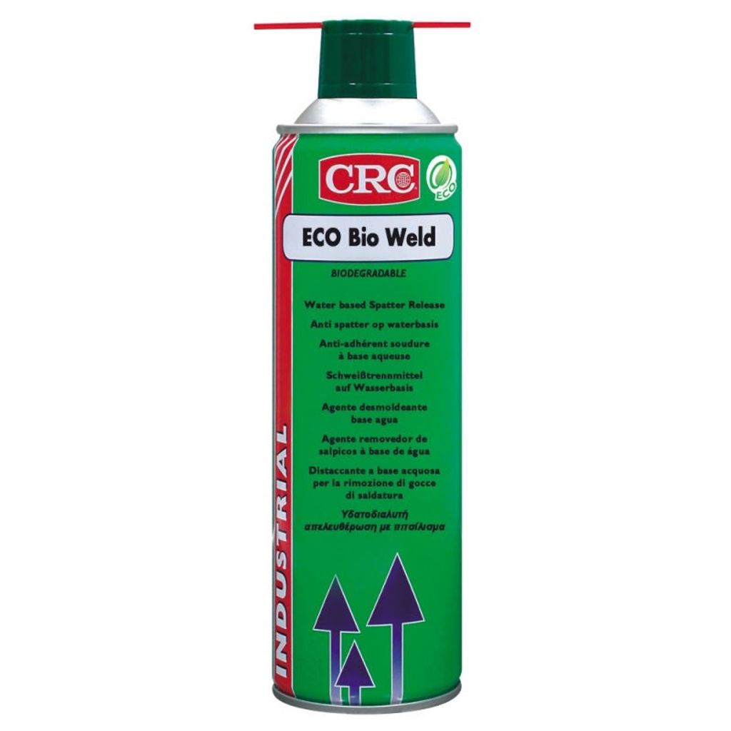 CRC ECO Bio Weld. Vattenbaserad svetsspray. Helt fri från lösningsmedel. Innehåller ej silikon eller grafit. Skyddar mot korrosion. Förhindrar vidhäftning. Skyddar svetsmunstycken. Förhindrar tilltäppning. Missfärgar inte.