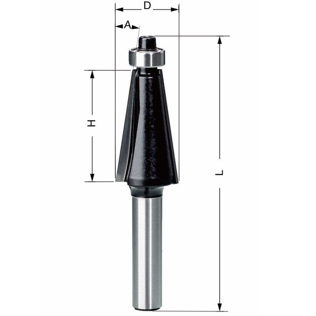 Delver 45 graders fasfräs för kantavfräsning på jämna och svängda ytor. Fasfräsen har monterat kullagor i botten som styr fräsen mot arbetsstycket. Fasfräsen är tvåskärig med HM-stål samt bottenmonterat kullager.