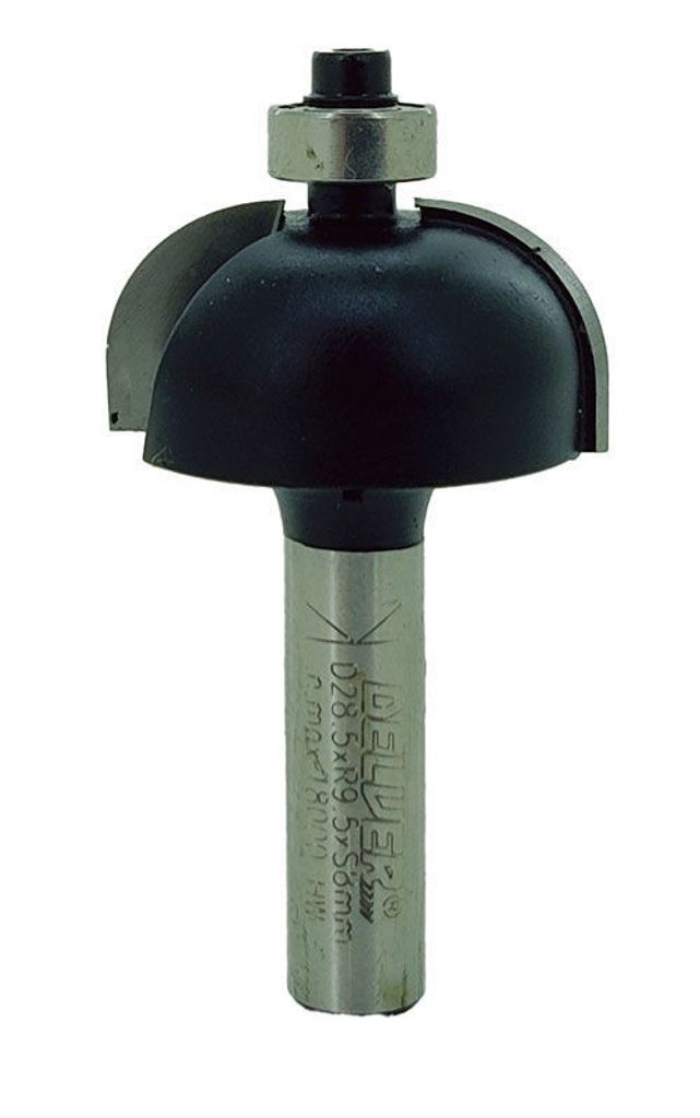 Delver Hålkälsfräs med 28 mm diameter och 9,5 radie, utrustad med ett styrlager. Användbar för kantprofiler, flush trimming, kopieringsfräsning, spår och fasningar, dörrar och fönster, och mycket mer.