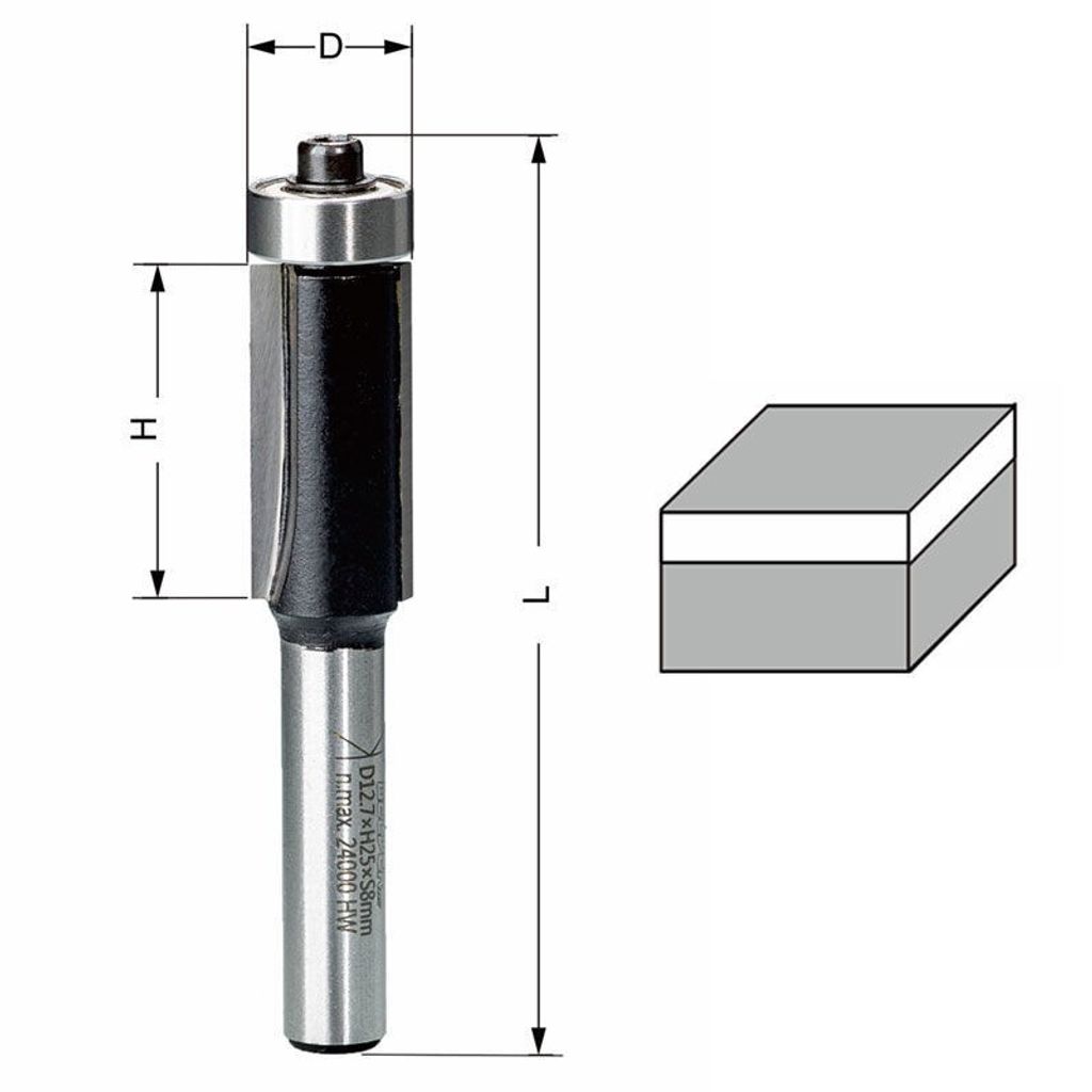 Denna kantfräs är utformad med två skär av hårdmetall (HM-stål) och har ett kullager som är monterat i botten av verktyget. Kullagret fungerar som ett styrlager och hjälper till att följa konturerna när du utför kantfräsning eller kopierfräsning. Detta gör det möjligt att uppnå exakta och jämna resultat i dina fräsprojekt.