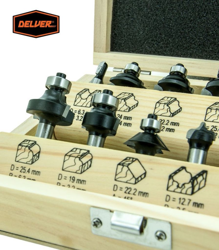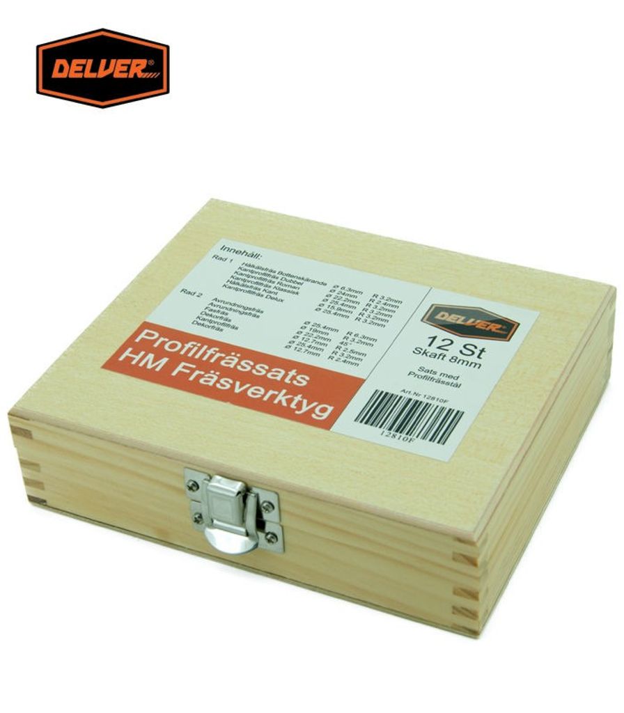 Delver Frässtålssats med Profil-/Avrundningsfrässtål av hög kvalité som innehåller en grundsats med 12st frässtål. Alla frässtål i satsen har 8mm skaft och passar fräsar med 8mm spännhylsa/mutter.