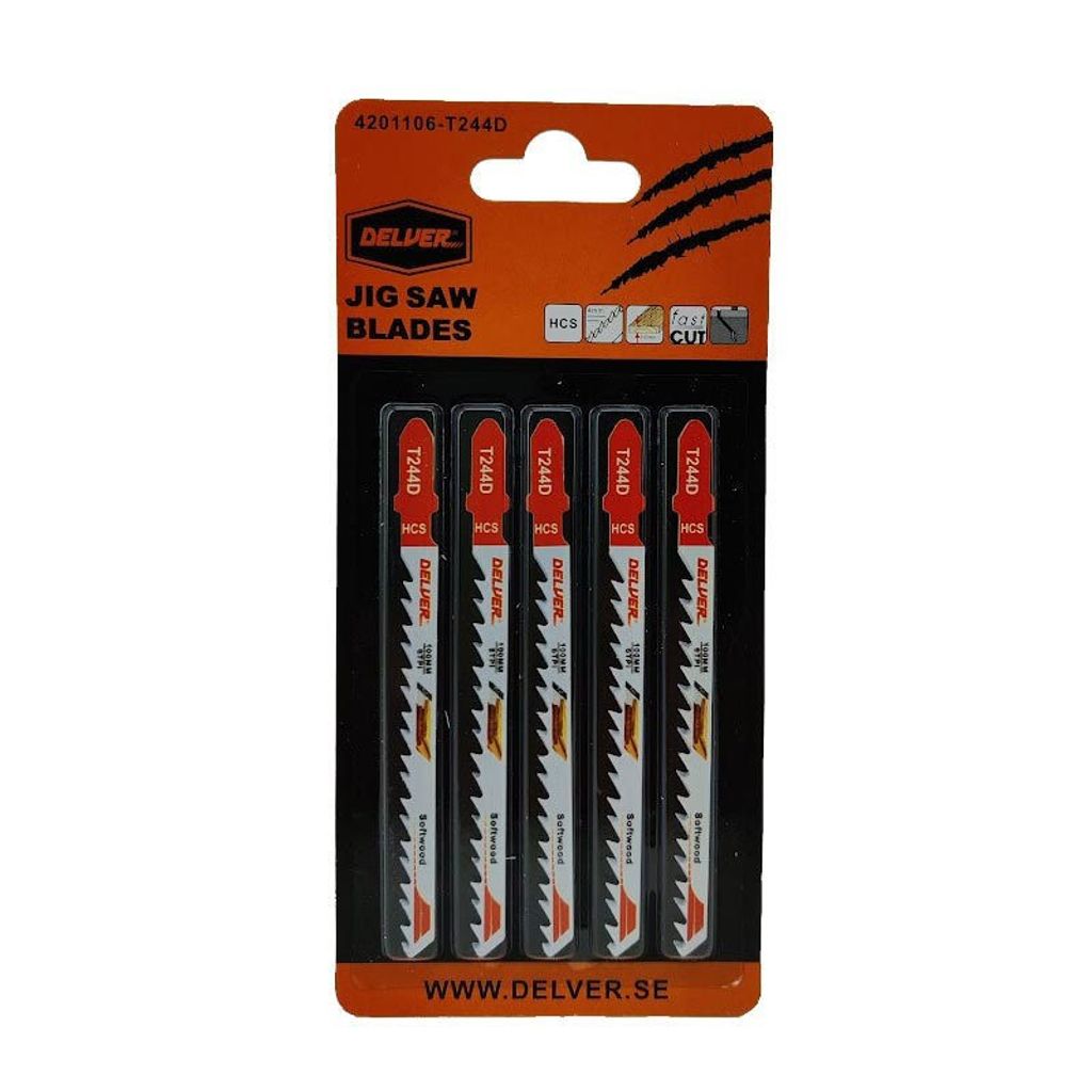 Delver T244D är utvecklat för att kombinera hög hastighet med snygg finish i vanligt förekommande träbaserade material. Den elastiska HCS-klingen biter lätt i arbetsstycket och håller riktningen väl, vilket minskar risken för att såglinjen vandrar. Resultatet blir ett jämnt snitt som kräver minimalt med efterarbete även när tempot är högt.