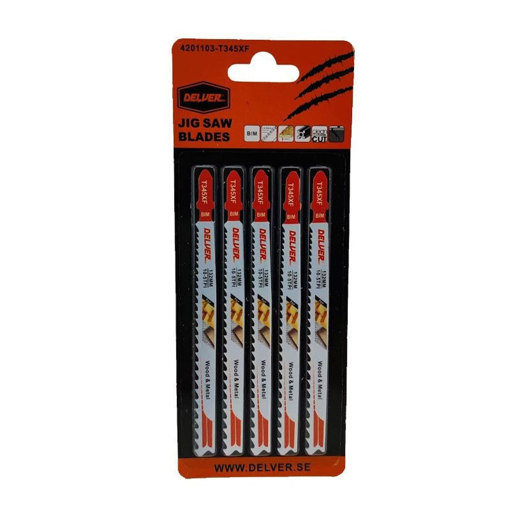 Delver T345XF är ett robust sticksågsblad i slitstark BIM som ger rena och fina snitt i byggvirke med spik samt i trä, plast och aluminiumrör och profiler ø 3–10 mm. T-fäste som passar de flesta sticksågar. Optimal tandning 2,4–5 mm för snabb men kontrollerad kapning. Levereras i smidigt 5-pack.