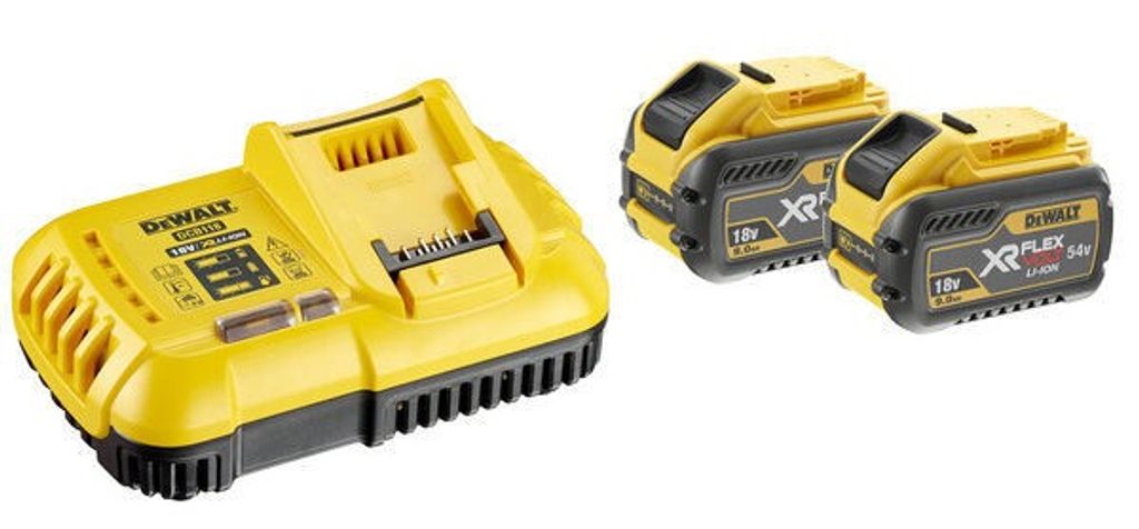 DeWalt DCB118X2 är ett FlexVolt laddpaket bestående av två stycken DCB547 54V 9,0ah batterier samt Snabbladdare DCB118. Ett FlexVolt DCB547 batteri är 9,0ah kopplat till en 18V XR maskin och ett 3,0ah batteri kopplat på en DeWalt FlexVolt maskin.