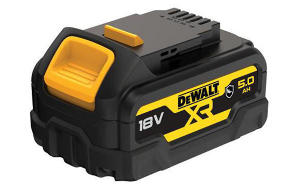 DeWalt DCB184G är ett 18V XR-batteri som är kompatibelt med befintliga Dewalt-verktyg. Batteriet har laddningsindikator (SOC), kåpa i glasfylld nylon (GFN) som tål vanliga kemikalier och fetter i garaget.