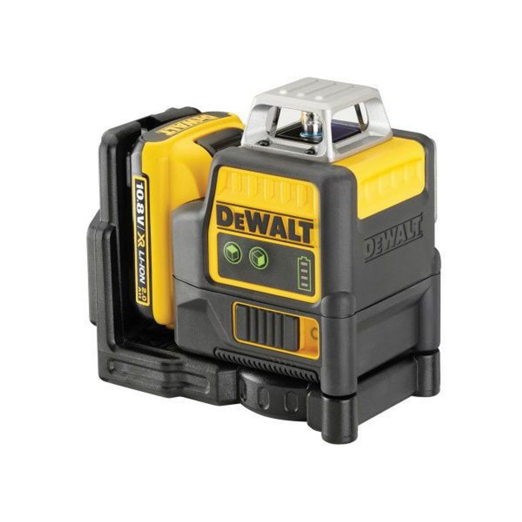 DEWALT DCE0811D1G är en linjelaser på 10,8V med grön laserstråle. Två stycken 360° självnivellerande linjer, horisontell och vertikal. Arbetsintervall upp till 30m med noggrannhet på ± 3mm.