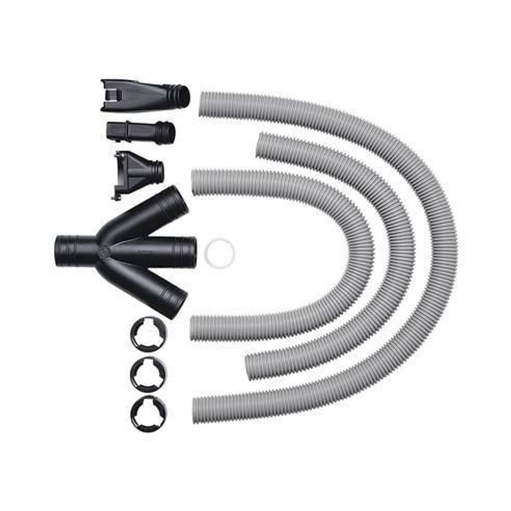 Satsen innehåller allt du behöver slangar, adaptrar och förgreningar som enkelt ansluts till din kapsåg och dammsugare. Resultatet är ett mer effektivt dammutsug med förbättrad arbetsmiljö och längre livslängd på maskinerna tack vare minskat dammintrång.