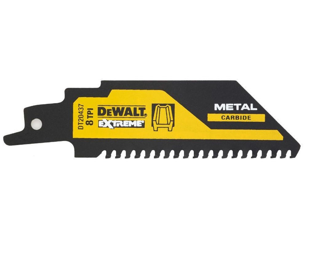 DeWalt DT20437 är ett tigersågblad av karbid, med hög kvalitet, lång livslängd och kapacitet till snabba kap. Sågbladet är gjort för att kapa i metall såsom rostfritt stål, gjutjärn och stålrör. Den långa och breda bladprofilen är designad för att öka hållbarheten och minska risken att bladet bryts.