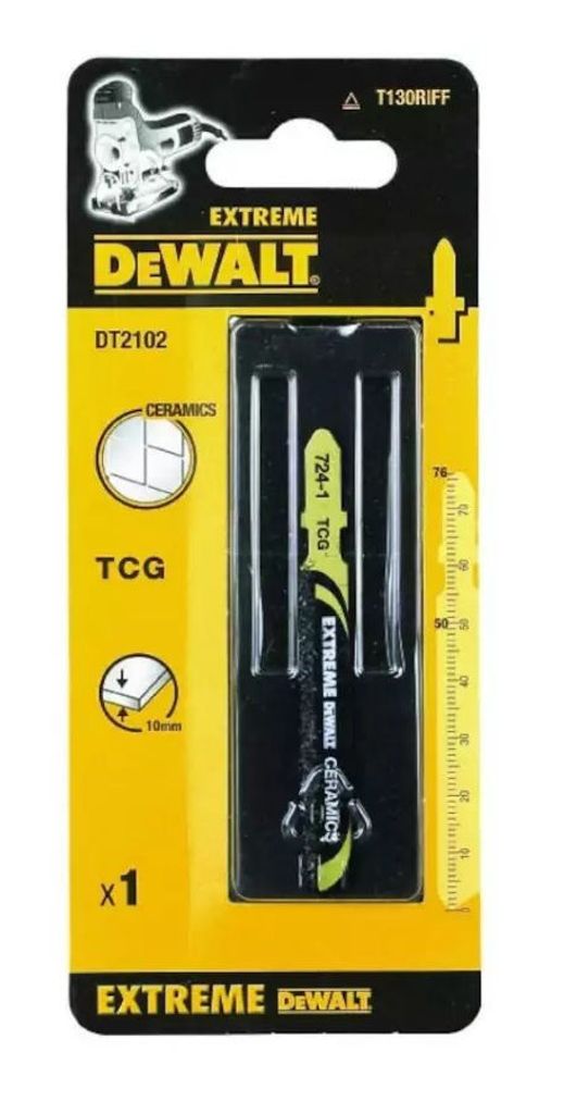 DeWalt DT2102 är ett sticksågblad täckt med hårdmetallkorn för kakel, glasfiber och armerad plast. Knivblad för mjuka material. Bi-metallblad för laminat, rostfritt stål och sandwichmaterial.