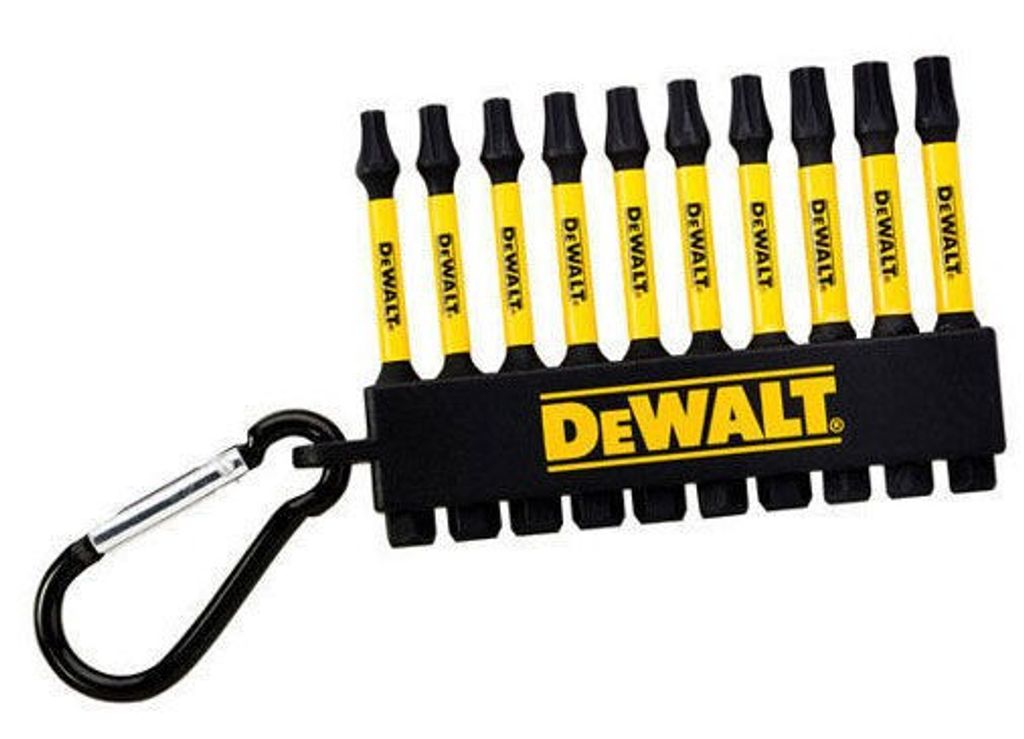 DeWalt DT7275 är ett 10-delat Torx-bitsset som inkluderar 3x T20, 4x T25, och 3x T30 bits. Setet kommer med ett bältesclips för enkel tillgång och dess optimerade vridmomentområde ger bitsen lång livslängd och högt vridmoment.