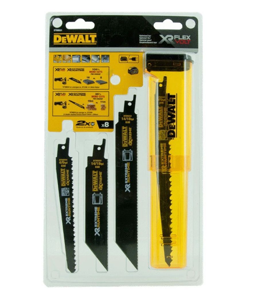 DeWalt Tigersågbladssats DT99551 är en sats av högsta kvalité i DeWalts XR-Serie. Innehåller både rivningsblad samt blad för metall. DT99550 består av 13st st tigersågblad samt en smidig behållare.