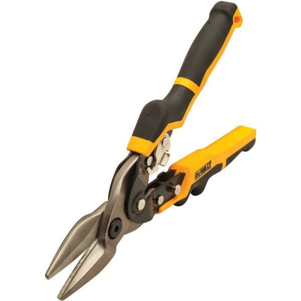 DEWALT DWHT14675-0 rak Ergo-plåtsax är ett professionellt verktyg som gör skärning av olika material, inklusive aluminium, vinyl, kartong, läder och metallplåt, enklare och mer effektiv. Designad för komfort med snedställd skärkant och sågtandat blad för jämna klipp, och certifierad för ergonomisk effektivitet.