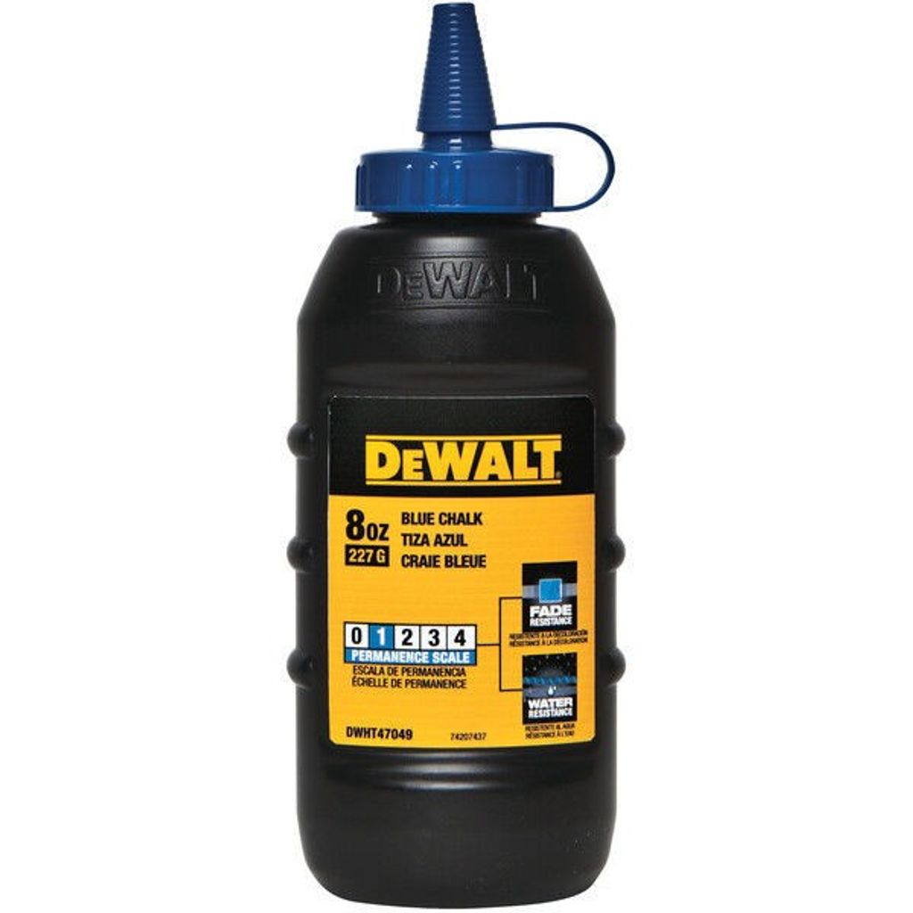 DeWalt DWHT47049-9 Blue chalk refill med en oval flaska för att inte rulla iväg.