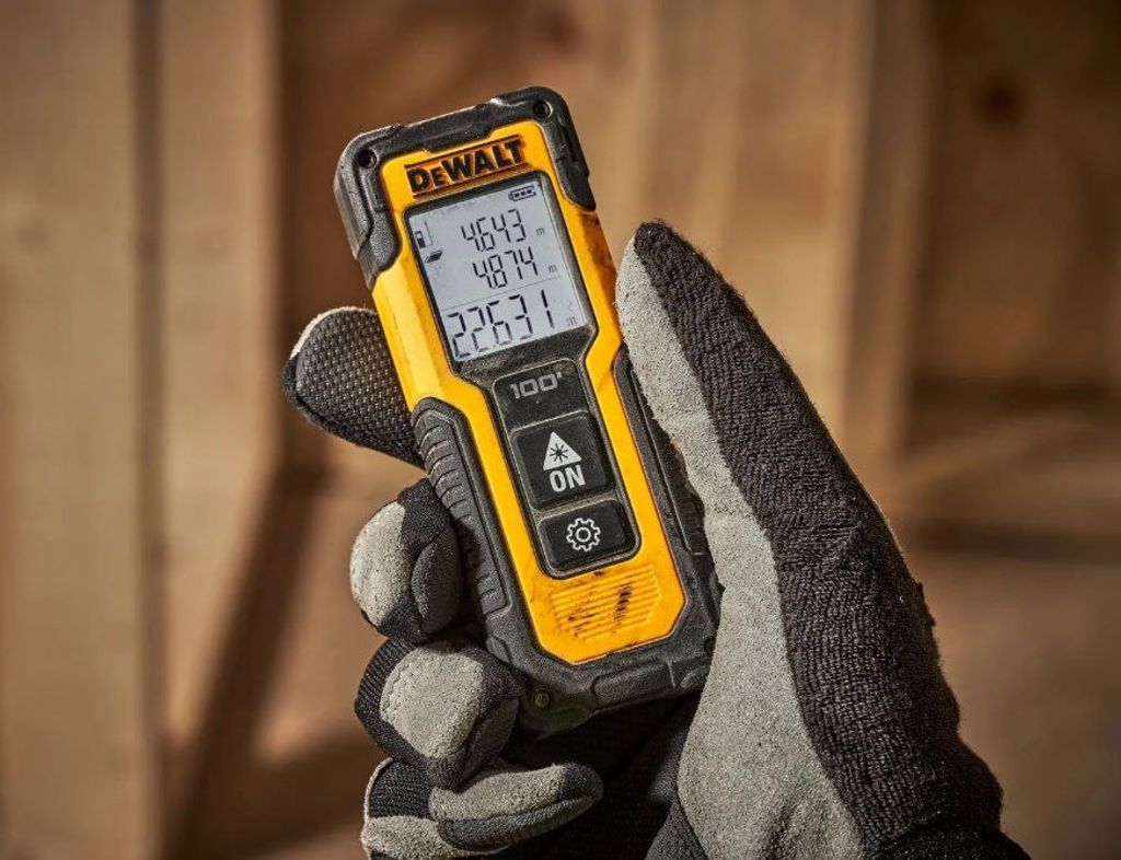 DeWalt DWHT77100 är en laseravståndsmätare med en räckvidd på 30 meter. Kan användas för att räkna ut volym, area och pythagoras sats.