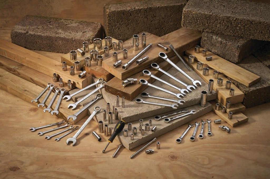 Ett spärrkombinycklar av stål i ett set om 7 delar. Spärrkombinycklarna har 72 tänder för en 5 graders omtagsvinkel.