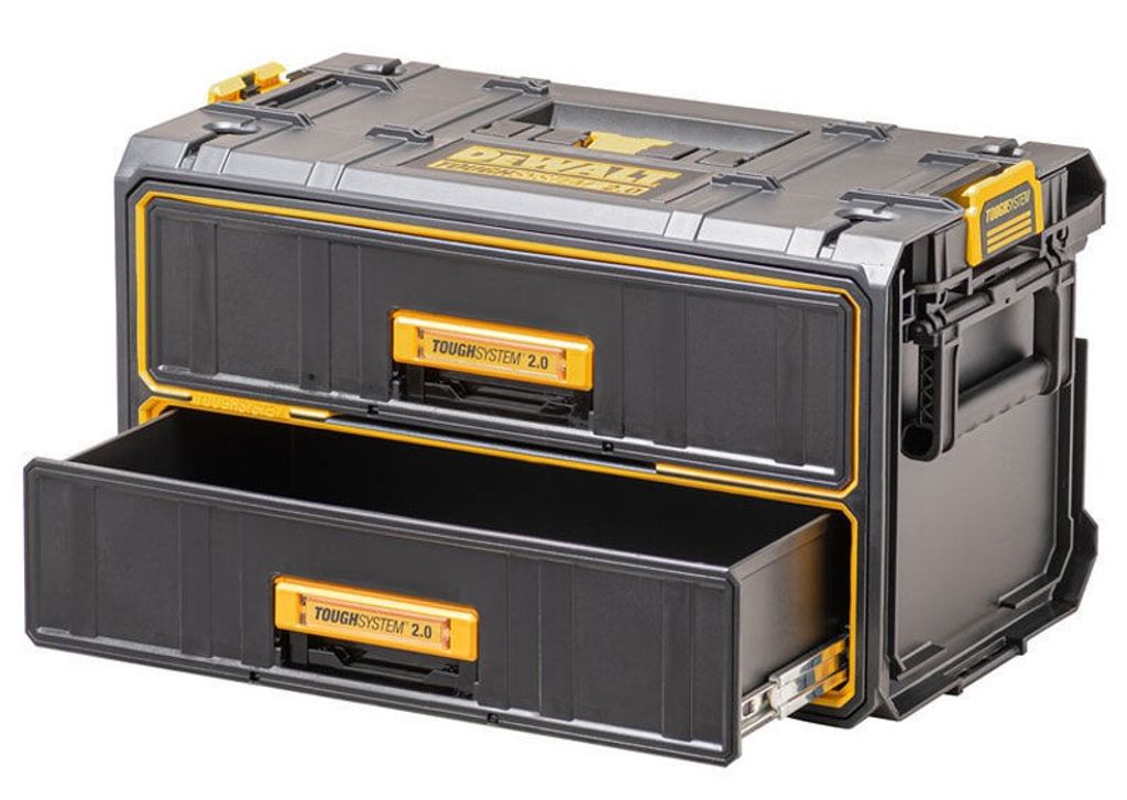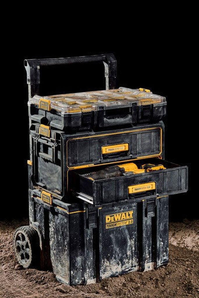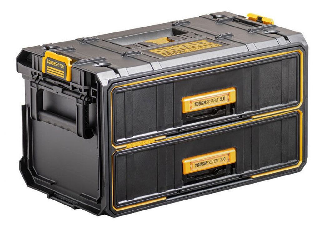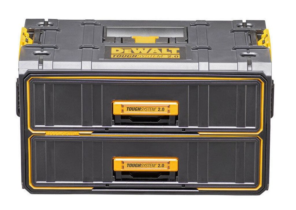 DeWalt DWST83529-1 erbjuder professionella användare en hållbar och mångsidig förvaringslösning med sina två ToughSystem 2.0 förvaringslådor, utrustade med kullagerlådor och auto-latch side stacking-hakar för enkel integration med andra ToughSystem-produkter.