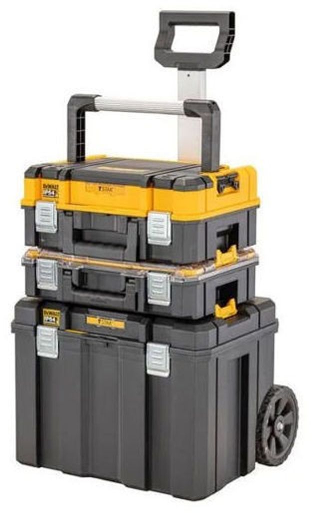 Det teleskopiska aluminiumhandtaget och de robusta 7-tums hjulen gör det enkelt att transportera även tunga verktyg över långa sträckor. Lådorna är utformade för att enkelt kopplas ihop med metallspännen, vilket ger en stabil och säker förvaring. TSTAK-systemet är också kompatibelt med DeWALT Tracker, vilket möjliggör spårning via DEWALT Tool Connect.