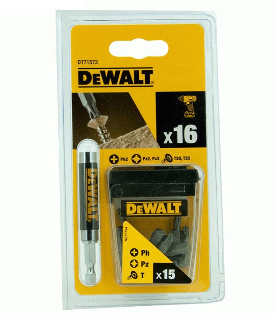 DeWalt DT71573 är en bitssats med bits av hög kvalité som tål tuffa tag. Bitslådan innehåller Torx, PZ och PH bits tillsammans med en magnetisk kort skruvguide/bitshållare.
