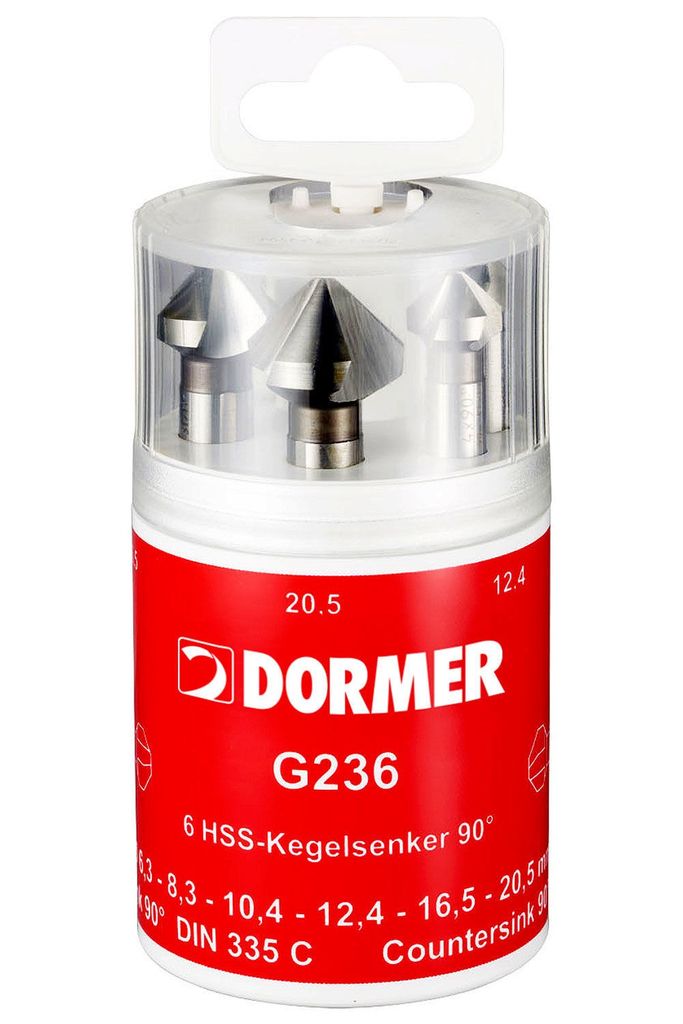Dormer G2364 erbjuder en komplett uppsättning försänkare i en innovativ DIAL-A-TOOL plastförpackning. Med 6 olika G106 försänkare som har en 90° vinkel och varierande diametrar passar de utmärkt för metriska standardskruvar med försänkt skalle. Tillverkade enligt DIN 335 C standard och av högkvalitativt HSS-stål med blank yta, de är perfekta för generella bearbetningsarbeten.