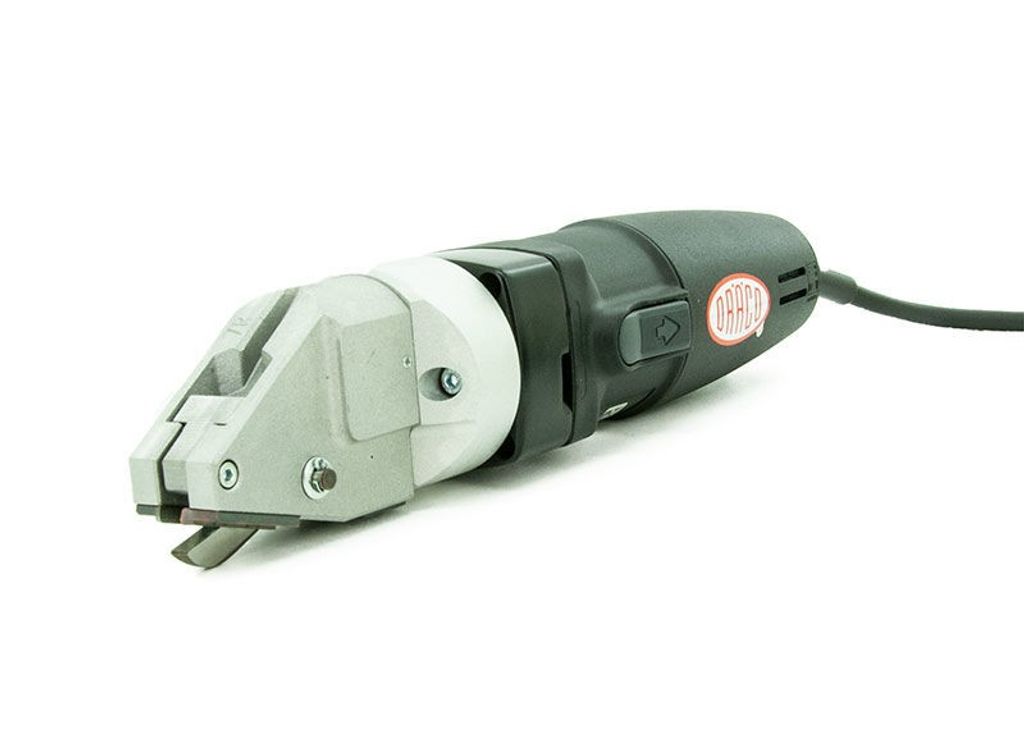 Dräco 3514-7R är en eldriven 500W plåtsax som klipper plåt upp till 2mm i stål. Plåtsaxen är enkel och behändig med låg vikt på endast 2kg. Minimum kurvradie på 45mm.