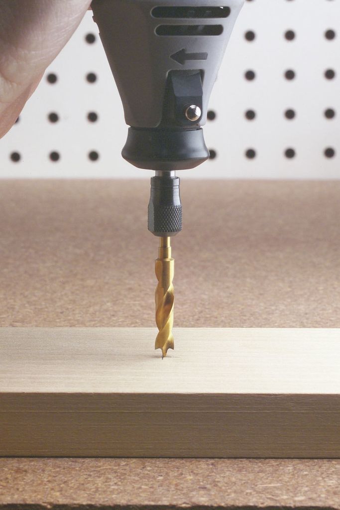 - Användning Unika Dremel-borrar i titan för trä med diameter på 3, 4, 5 och 6 mm.