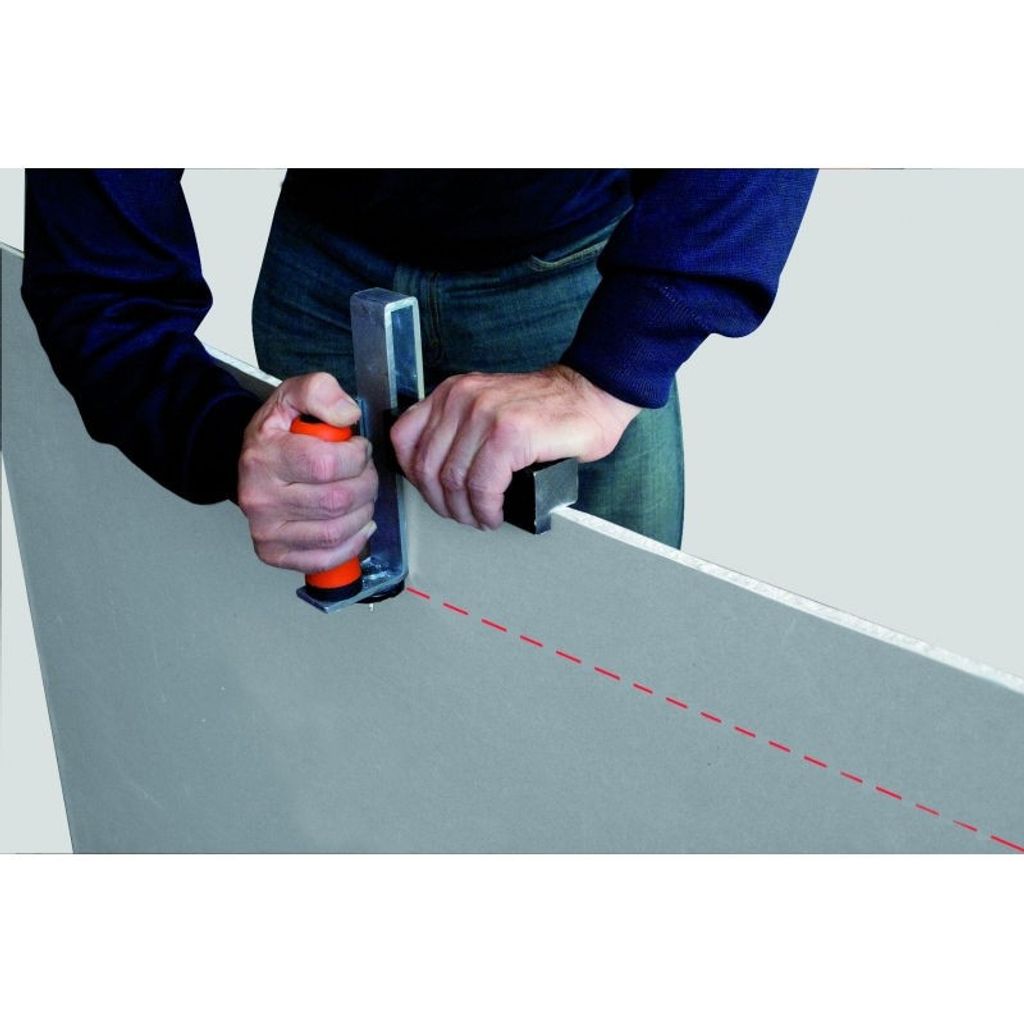 Edma Plac & Roll är utvecklad för snabb och exakt bearbetning av gipsskivor när raka, rena kanter krävs. De dubbla tandade knivtrissorna skär papp och kärna samtidigt från var sitt håll, vilket ger ett rent och snyggt snitt som inte behöver efterbearbetas. Resultatet blir ett jämnt kantuttag som sparar både tid och slipdamm och som ger ett perfekt underlag för spackel och skarvremsa.