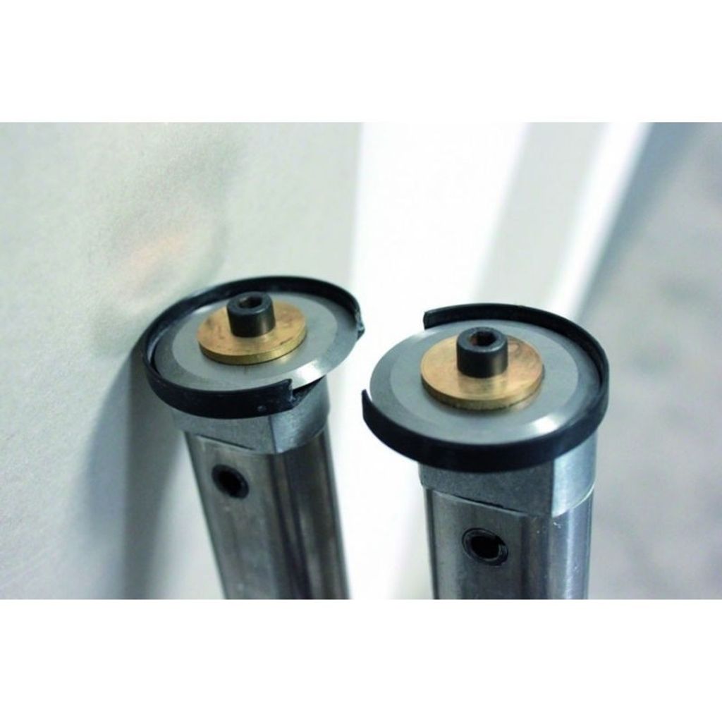 Varje trissa kan ställas in individuellt efter skivans tjocklek, vilket gör verktyget lika effektivt på 6 mm som på 18 mm. Det steglösa instället och den fixerbara mekanismen låter dig snabbt välja exakt bredd på kanten du vill ta bort, upp till 15 cm. En kraftig stödprofil guidar verktyget längs skivkanten och håller linjen stabil även vid långa pass.