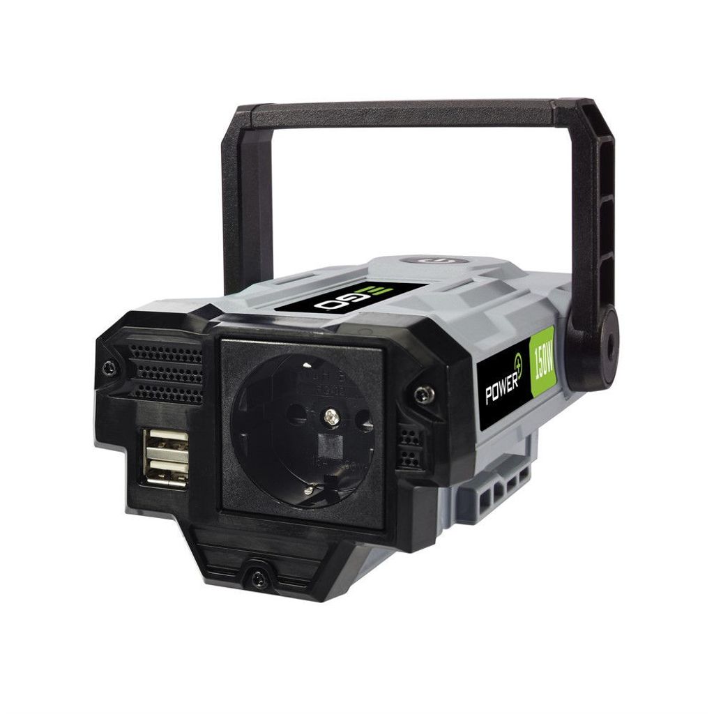 Med spänningsomvandlaren PAD1500E och ett batteri från EGO kan du nu ha 230 Volts växelström med dig vart än du önskar. Max effektuttag är 150 W vilket ger gott om kraft för tex laddning av andra batterier eller bra belysning.