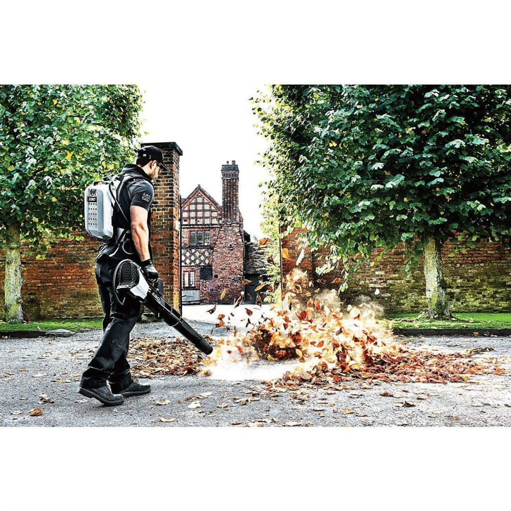 - Direktanslutning för batteri saknas då modellen är avsedd att användas tillsammans med EGO's batterisele eller ryggbatteri. Med ryggbatteriet BAX1501 uppnås en effektiv driftstid på 70-250 minuter.