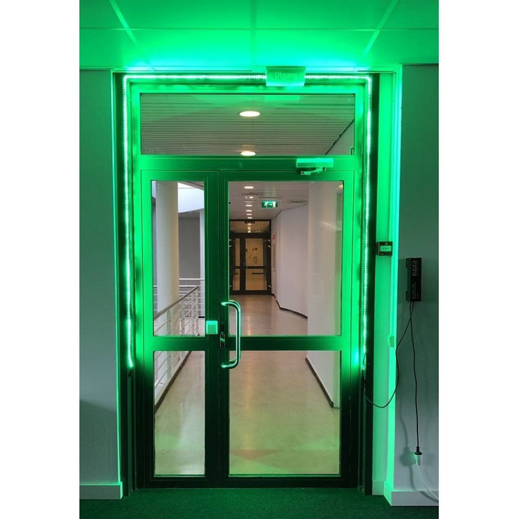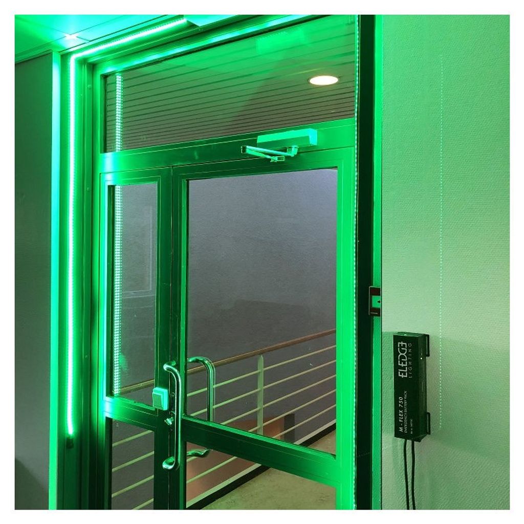1 x 5 meter grön LED slinga, avsedd att placeras i riktning mot nödutgångar eller runt en nödutgång exempelvis