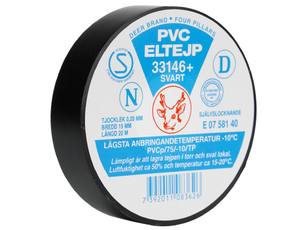 ETAB S-märkt eltejp av mjuk PVC. Används vid elinstallationer. Vid skarvning av kabel, rör etc. Innehåller SVHC.