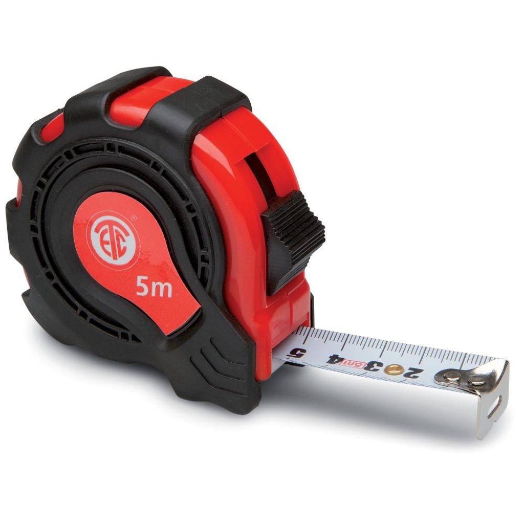Mätband med vitt skyddslackerat stålband. Självupprullande band, med låsanordning.