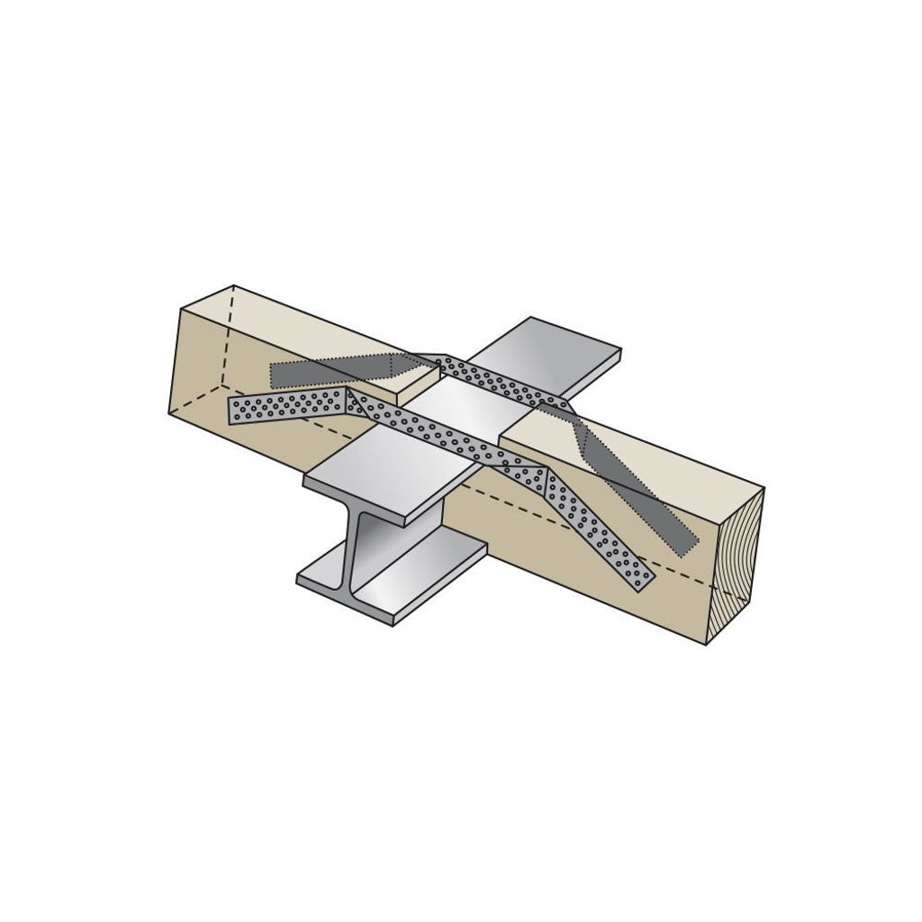 Bjälkstropp JS används huvudsakligen till när träbjälkar kapas för att kunna lägga in en stålbalk. Bjälkstroppen överför då de dragkrafter som eventuellt finns i golvbjälken.
