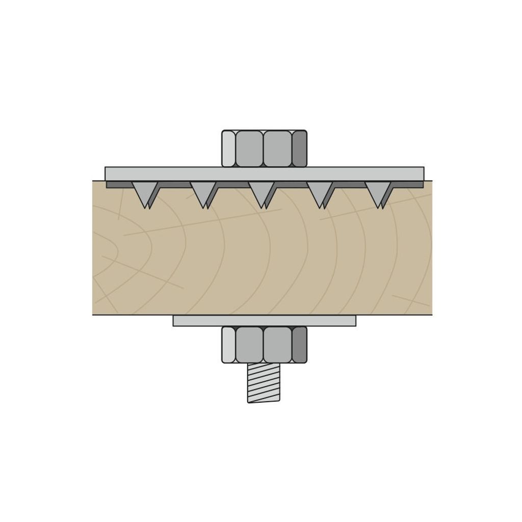 - Genom att brickans tänder pressas in i träet över en större yta ökar möjligheten att uppta större tryck- och dragbelastning.