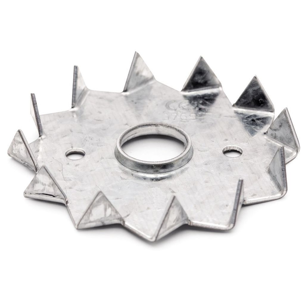 Bultförstärkningsbricka SPS enkelsidig används till förstärkning av bultade infästninfgar i trä mot trä, trä till stål eller trä till betong.