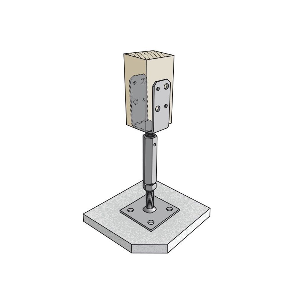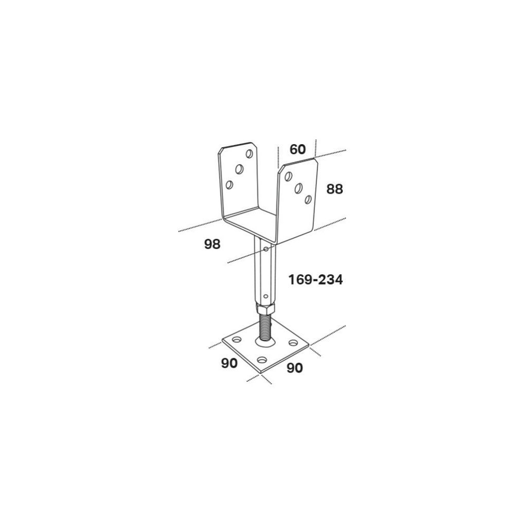 Stolphållare CSAF erbjuder en justerbar och robust lösning för infästning av stolpar i betong. Lämplig för staket, pergola, och carport. Material: 4 mm varmförzinkad stålplåt. Dimension: 98x60x169-234 mm.