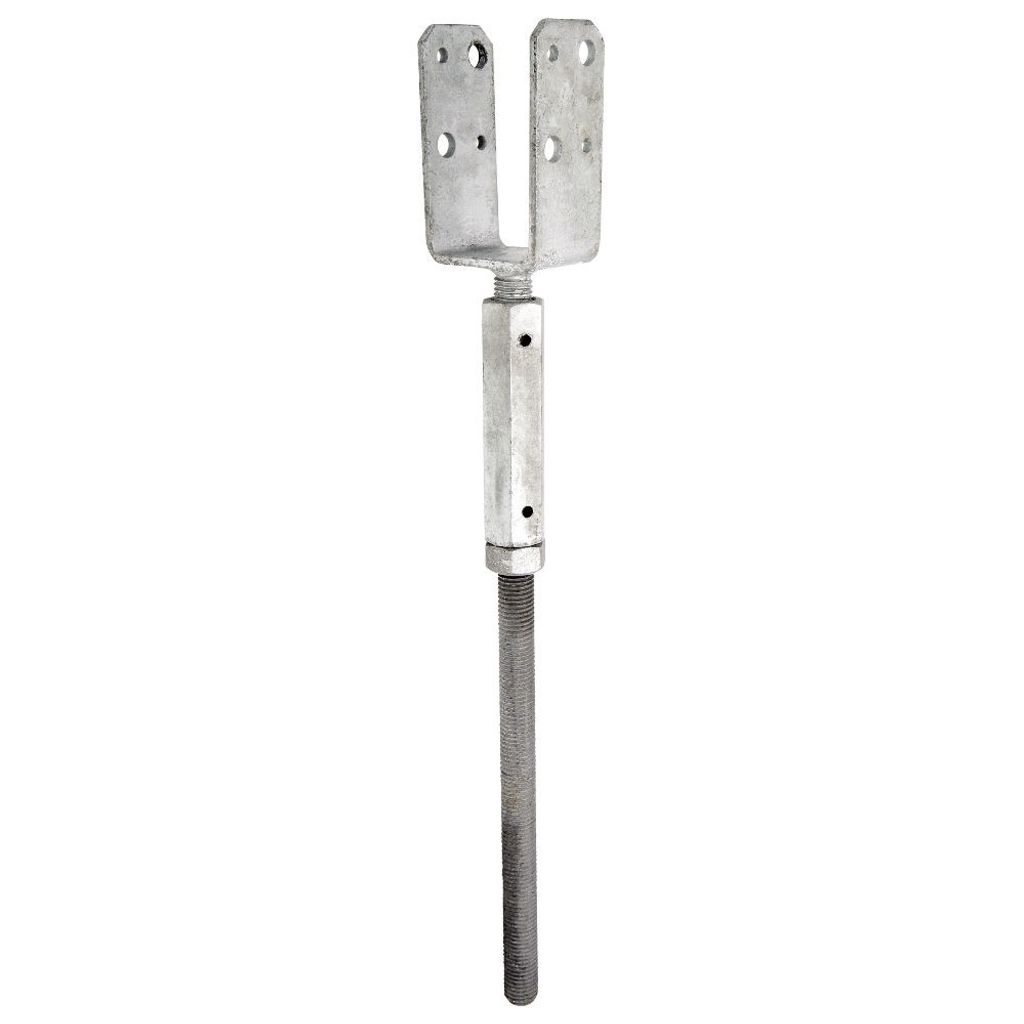 Stolphållare CSAH är justerbar i höjd med hjälp av en vänster-/högergängad långmutter. Används för ingjutning i betong vid infästning av stolpar, till exempelvis staket, pergola och carport.