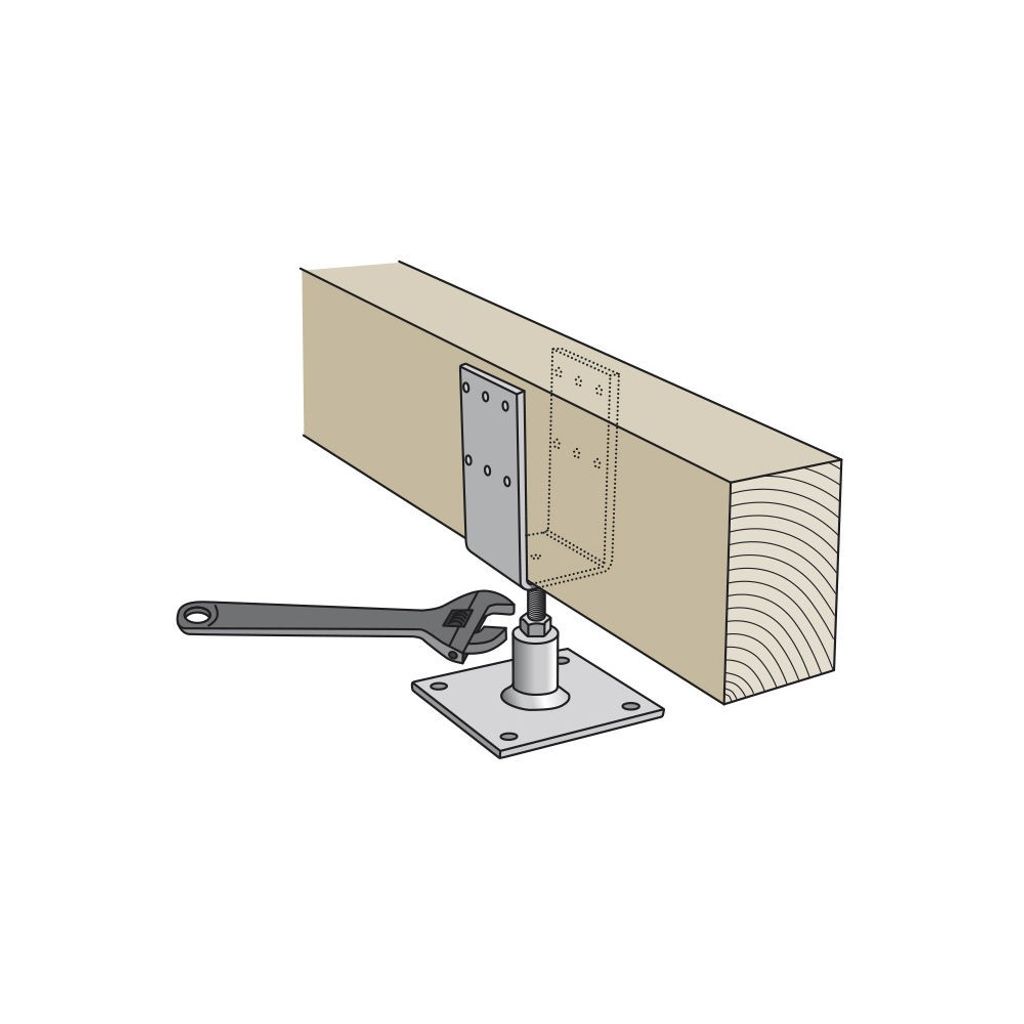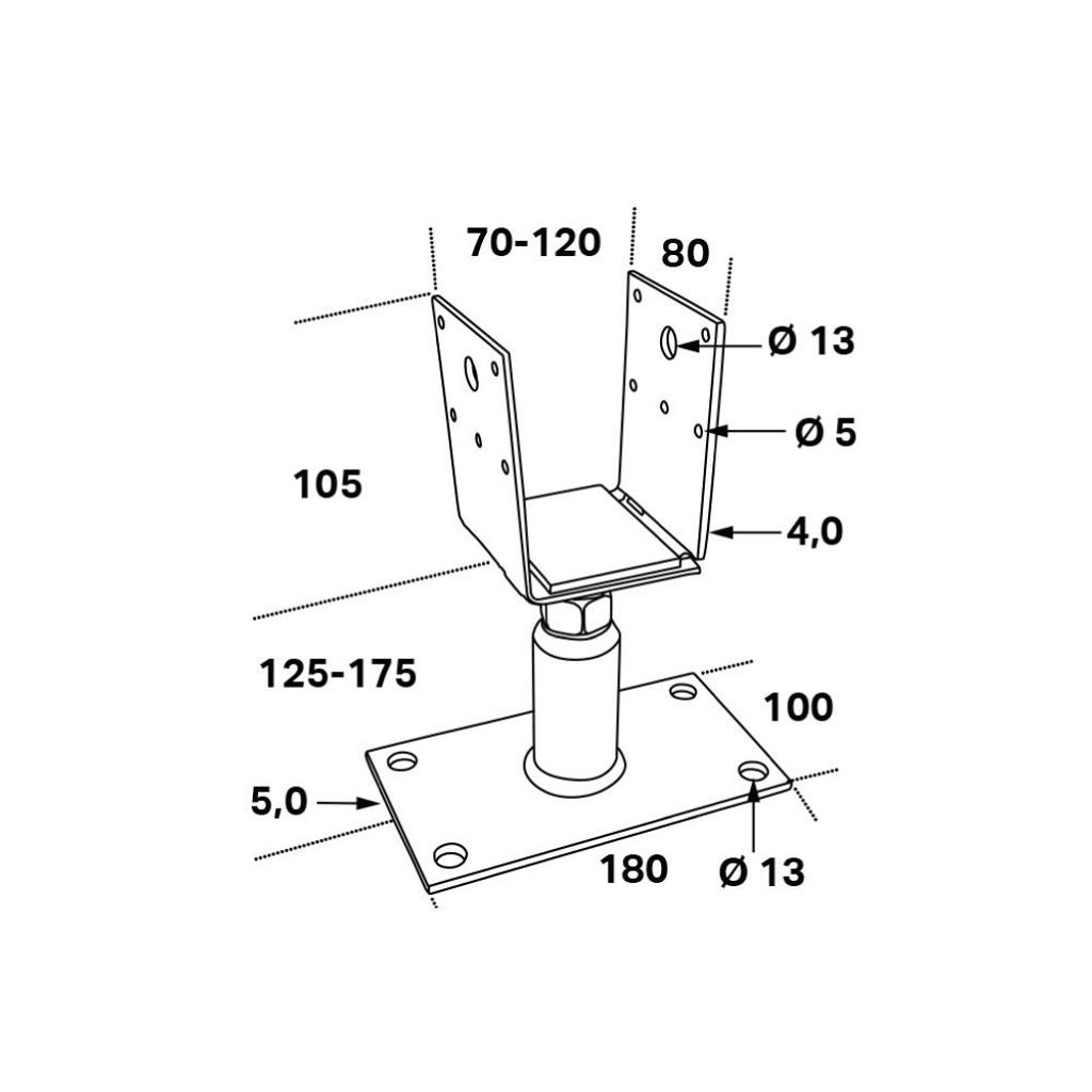 Stolphållare CSFA används för fastsättning i betong vid montering av trästolpar. Är justerbar i höjd och bredd.