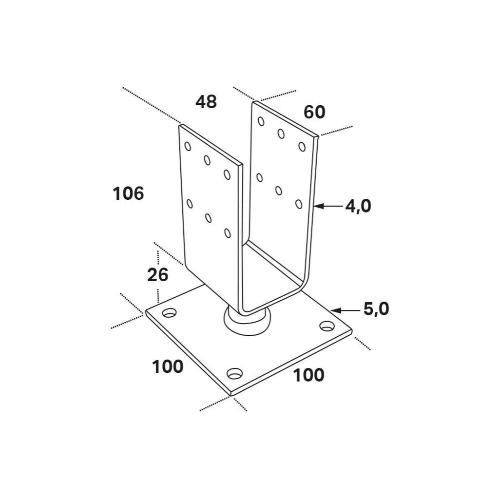 Stolphållare CSUF används för fastsättning i betong vid montering av trästolpar. För icke bärande konstruktioner.