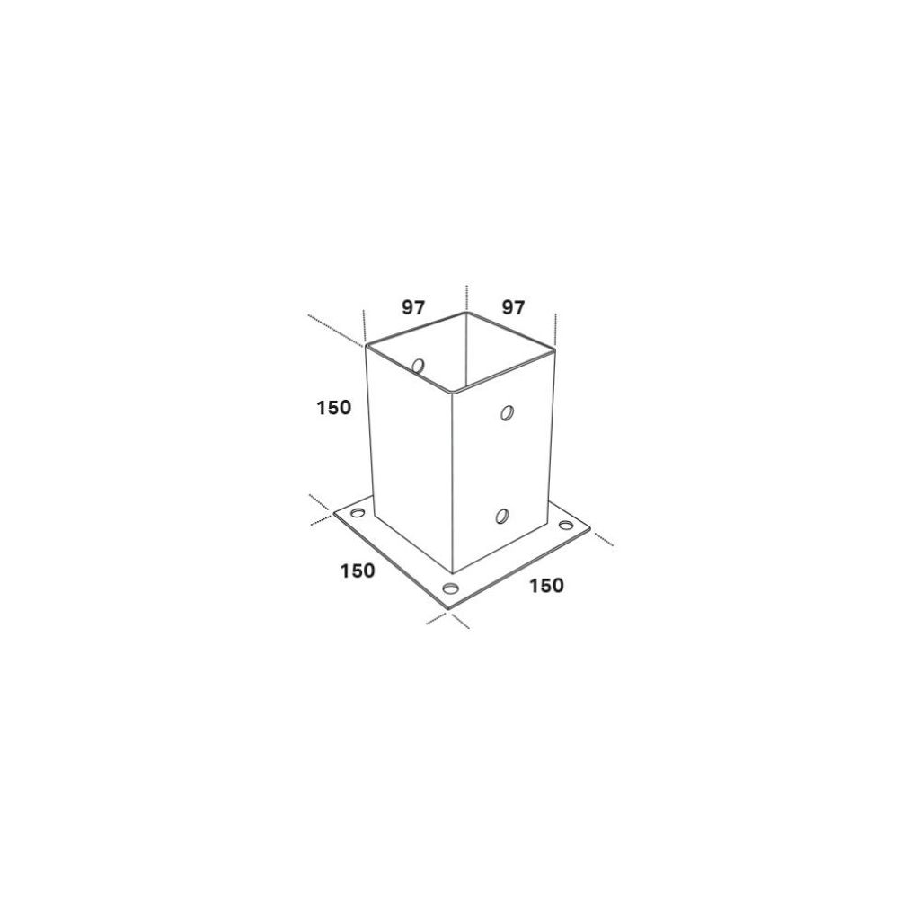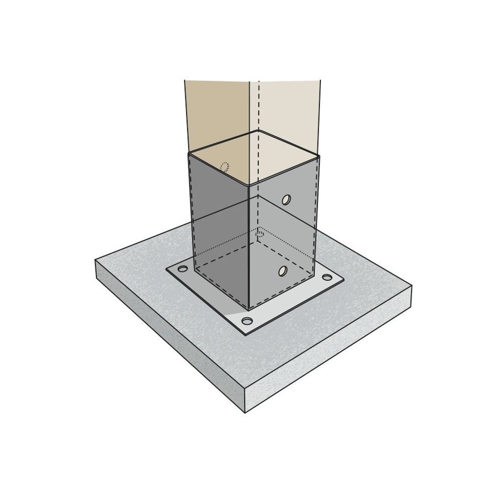 Stolpplatta PSP används för enkel montering av stolpar till lättare byggkonstruktioner som t.ex staket, grindar m.m. Med fyra hål för fastsättning i trä, betong eller berg.