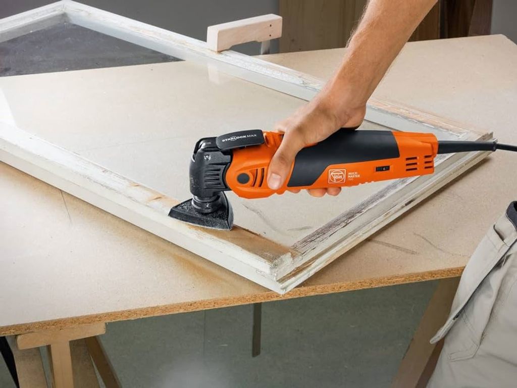 Fein Multimaster MM 700 MAX TOP är ett kraftfullt MultiTool med 60 tillbehör, perfekt för renovering och inredningsarbeten. Med 450W motor, antivibrationssystem, och StarlockMax-verktygsfäste, erbjuder det snabb avverkning och precision.