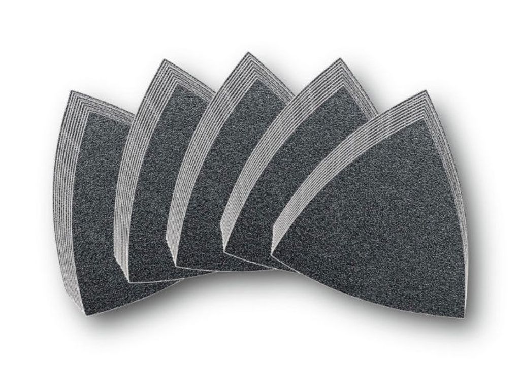 Fein slipapperpaket bestående av 50st slippapper av olika kornstorlekar för allroundanvändning från grov- till finslipning av nästan alla material. Korundslipkorn och helplastbindning garanterar hög avverkningskapacitet, liten igensättning och lång livslängd. Innehåll: vardera 10 slippapper kornstorlek 60, 80, 120, 180, 240 ohålade, med kardborrfäste.