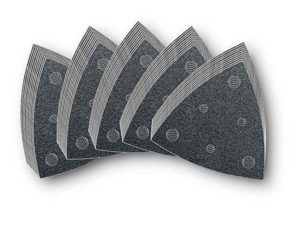 Fein ohålat trekantsslipapper för Multimaster med kardborrfäste är perfekt för allroundanvändning på olika ytor. Det är lätt att fästa och byta tack vare kardborrefästet och kan användas på ett brett utbud av material. Levereras i förpackning om 50 st.