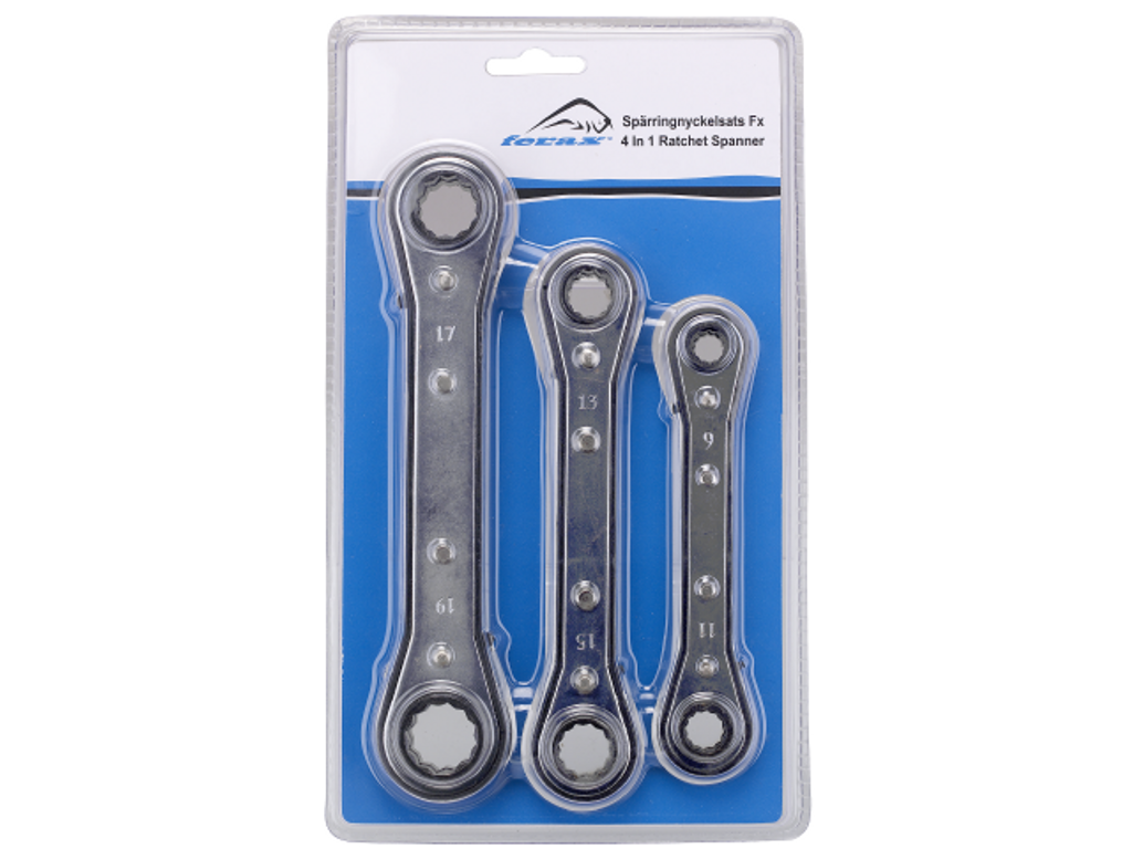 Spärringnyckel med metriska dimensioner. Har 4 storlekar i ett.